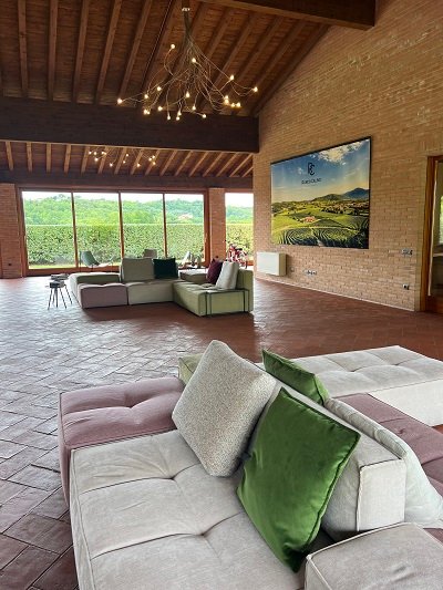 Oggi questo luogo è un vero spettacolo di design, curato in ogni dettaglio all’interno, con enormi vetrate che permettono una vista a 360° sui vigneti aziendali. Un’architettura minimalista e pulita, un grande openspace per l’accoglienza e un’elegante sala degustazione con un lungo tavolo incorniciato dai vigneti.