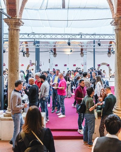 All’interno del chiostro, climatizzato con grande cura, la temperatura risultava ideale, con un giusto compromesso tra comfort umano e necessità del vino. Il servizio — impeccabile per tempi, precisione e professionalità — ci ha consentito di assaggiare tutte le etichette in degustazione.