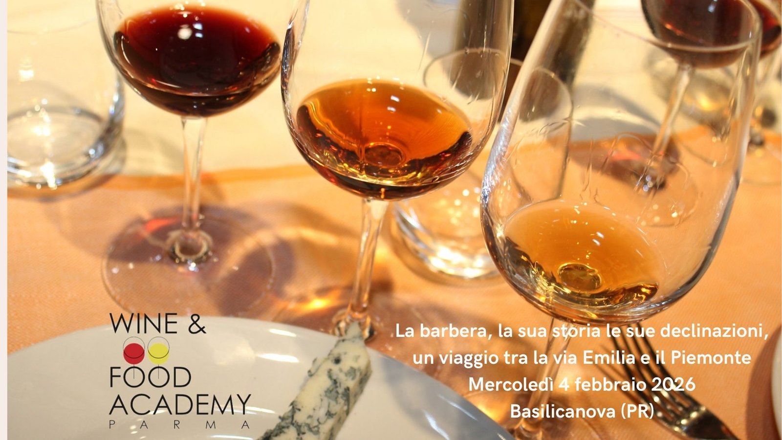 Proseguono gli eventi della Wine and Food Academy 2025/2026 con “La barbera, la sua storia le sue declinazioni, un viaggio tra la via Emilia e il Piemonte”. Degustazioni, cultura e beneficenza per sostenere le scuole di Padre Paolino in Uganda.