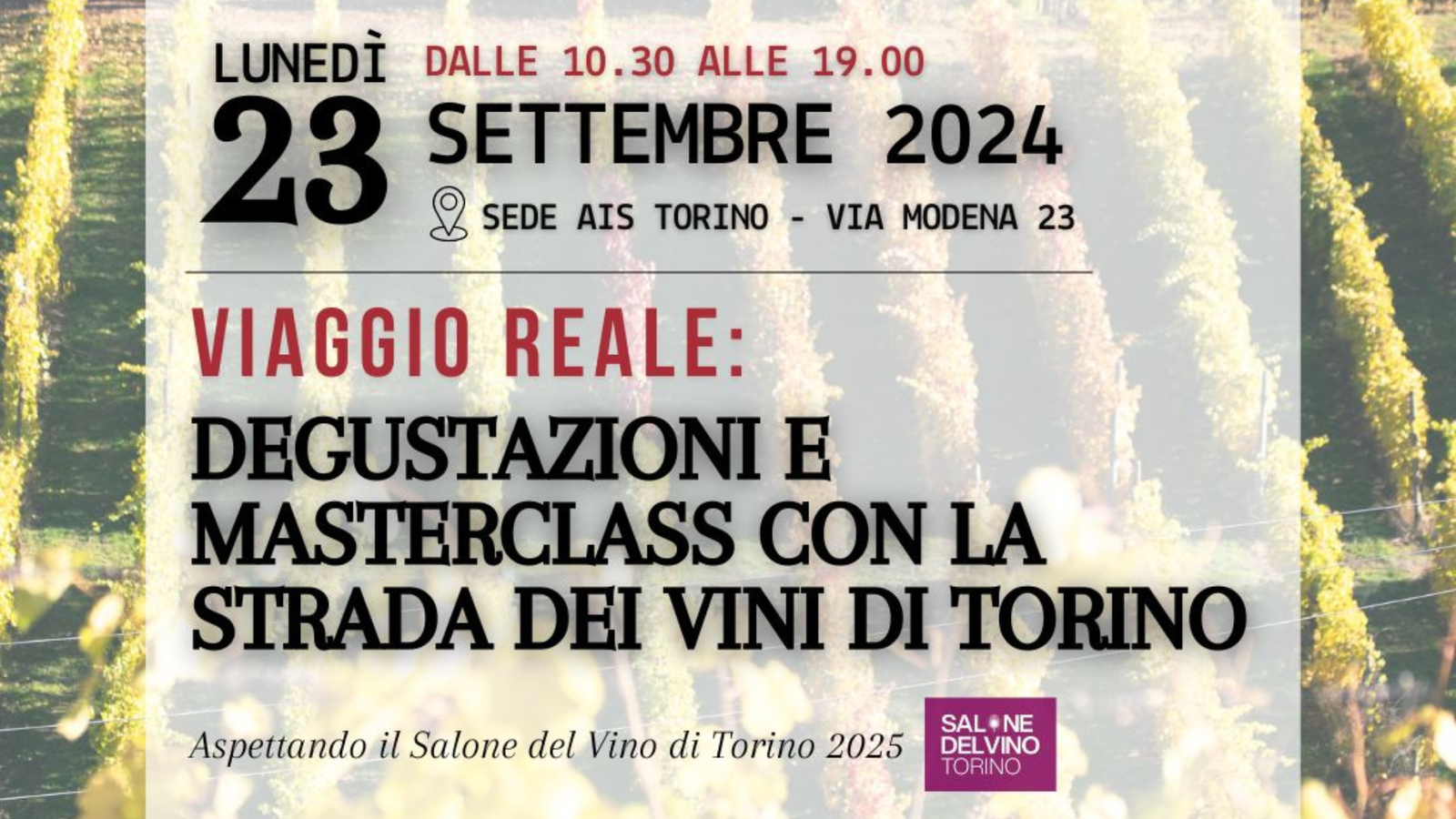Lunedì 23 settembre 2024, i vini e i prodotti agroalimentari della Strada Reale dei Vini Torinesi saranno protagonisti di un evento di degustazione alla scoperta dei tesori enogastronomici della Strada.