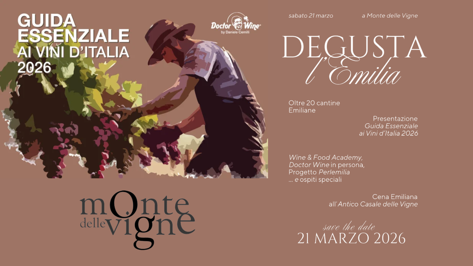DoctorWine a Monte delle Vigne per la presentazione della Guida Essenziale ai Vini d'Italia 2026 nel corso dell'evento "Degusta l'Emilia" DoctorWine a Monte delle Vigne per la presentazione della Guida Essenziale ai Vini d'Italia 2026, evento in collaborazione con Wine & Food Academy, Perlemilia, ONAV Parma e Antico Casale delle...