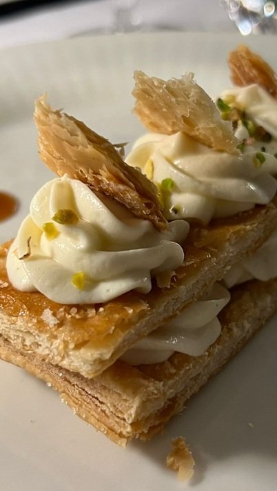 We concluded with a Millefeuille 2.0, with Vin Santo cream and salted caramel. Paired with Vin Santo del Chianti Classico Doc 2017.