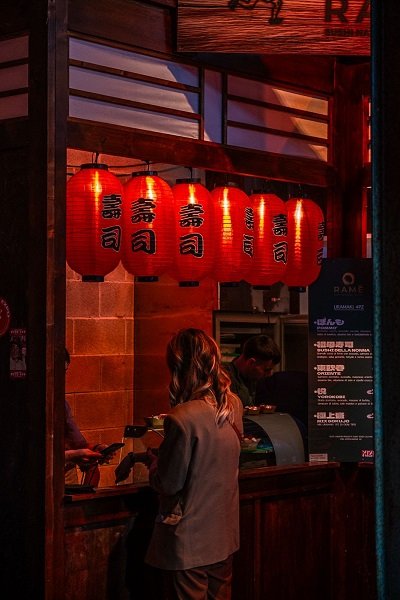 Leaving behind the tam tam of the Capital, I crossed the threshold of Kizuna and felt transported as if from a time capsule into a magical atmosphere. Paper lamps, wooden booths, oriental scents and old-fashioned posters.