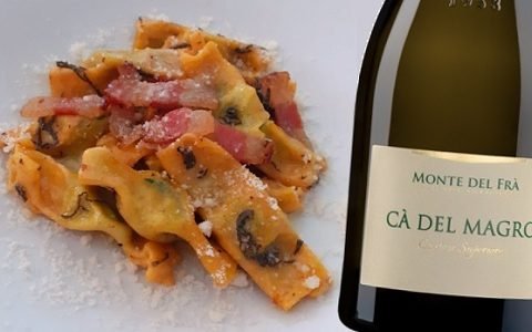 We pair this seasonal recipe with pumpkin with Chianti Rùfina Riserva Terrælectæ Vigneto Lastricato 2020 Castello del Trebbio, which perfectly balances the sweetness of the pumpkin and macaroons, the toastiness of the hazelnut butter, and the savoriness and persistence of the aged cheese.