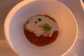 - a “carte blanche” menu consisting of 5 courses created freehand by the chef using the best raw materials available in the market of the day, cost 70 euros.