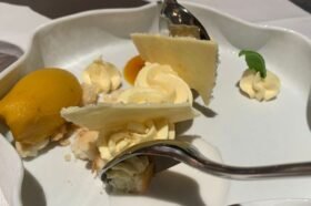 - a tasting menu with Volvèr‘s historic classics: pink shrimp tartare, watercolor risotto with squid ink, amberjack with celeriac fondue, the Chocolate Cigar, cost 60 euros.