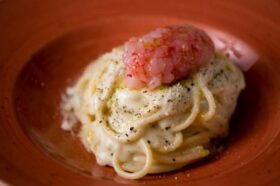 Tra questi proprio in angolo tra le due strade si trova Cambio. È gestito dai giovani Franco Magliocchetti e Fabio Trovato già dal 2016, e ha cambiato nome dal 2019. Fabio, figlio d’arte, adora stare in cucina, ha già lavorato al Moma e all’Aleph, ed è di origine pugliese così come Franco, che è il front men della situazione, è sommelier di vino e di olio (s’è pure guadagnato il titolo di Miglior sommelier dell’olio nel 2019), che dalla Puglia, passando per esperienze all’estero, è approdato a Roma con tutta la sua vitalità, amore per la musica e carica comunicativa. E la sua grande passione per il vino. Prova ne è la cantina ben fornita sia di vini semplici offerti a giusto prezzo, che bottiglie anche molto importanti, sia italiane che estere.