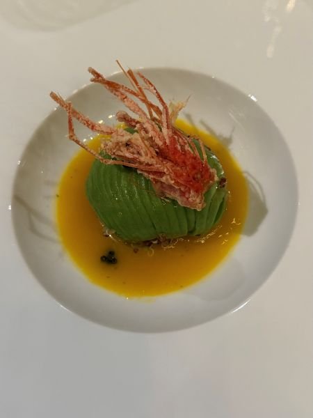 Ad aprire le danze è stato Italo Bassi con l’antipasto “Yin Yang: un’insalata di gamberi rossi, quinoa, zenzero, avocado, mango, sale di Cervia e caviale”, accompagnato dallo champagne Drappier Grande Sendrée rosé 2010. Ancora suo anche il “Risotto al cavolo nero, caprino, latte di aringa affumicata e polvere di cipolla bruciata” che è stata abbinato invece al Grüner Veltliner Smaragd Ried Achleiten 2021 del domaine austriaco Wachau.