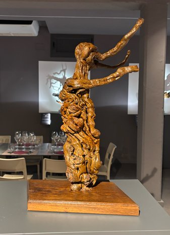 The artist, struck by the fantastic shapes of the root system and vine stumps of an old vineyard grubbed up by his father Achille, decides to look for others and make them into an art form. And it is precisely observation of these natural forms of pre-phylloxera vineyards. that inspired the birth of the winery’s genetic design.