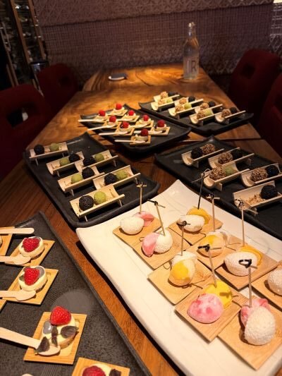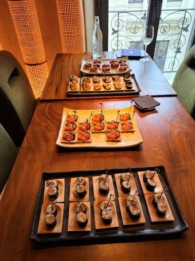 A long wooden inlaid table in the privée room, lined glasses, warm light and a nod to Japanese essentiality: this was the setting that hosted, in the contemporary spaces of Zuma Rome, the tasting of the Muratori Winery.